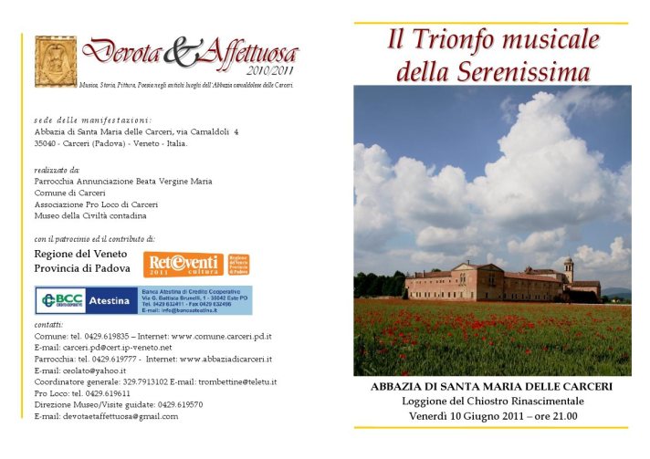 Il Trionfo musicale della Serenissima – 10 giugno 2011 10 giugno 20111 settembre 2011/Devota & Affettuosa Condividi: Fai clic per condividere su Facebook (Si apre in una nuova finestra) Facebook Fai clic per condividere su X (Si apre in una nuova finestra) X Fai clic per inviare un link a un amico via e-mail (Si apre in una nuova finestra) E-mail Fai clic qui per stampare (Si apre in una nuova finestra) Stampa Mi piace Caricamento... Categories: Eventi