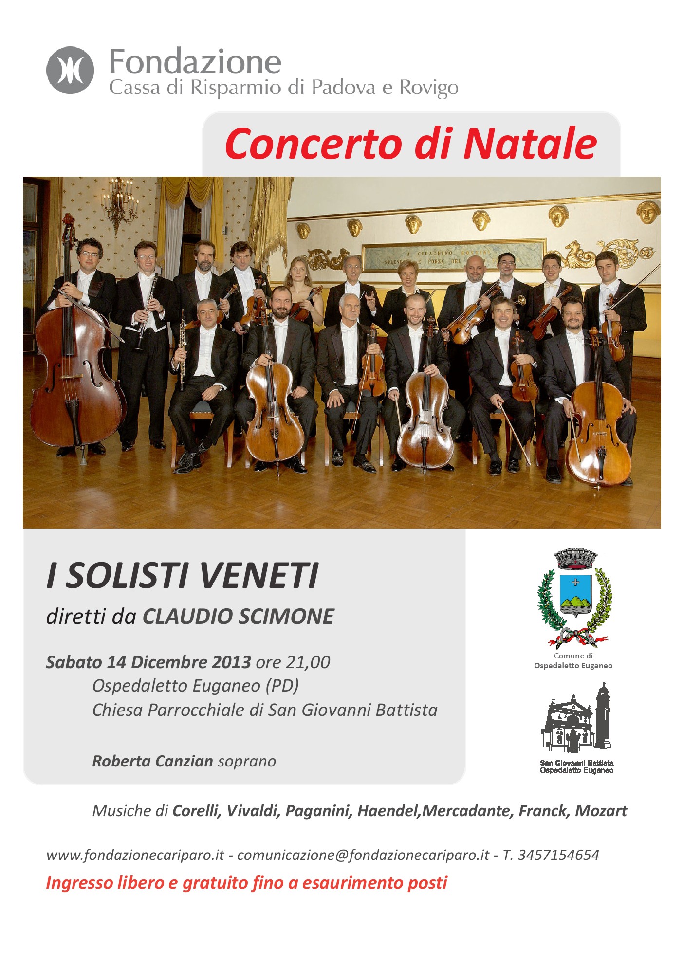 In attesa dei primi concerti natalizi della nostra rassegna 2013, siamo lieti di pubblicizzare un bell’evento organizzato dal Comune di Ospedaletto Euganeo: i Solisti Veneti in concerto.