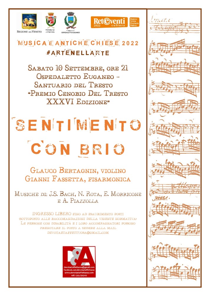 Buongiorno, Premesso che i musicisti del concerto di ieri sera sono validissimi, noto che l’acustica del Santuario del tresto,non è adatta allo strumento fisarmonica. Essa più di qualche volta sovrastata la pur forte e meravigliosa voce del violino di g.b. Mi permetto di dire inoltre che ,nel contesto di concerti di musica antica,sarebbe consona una luce più tenue. Grazie.m.elisabetta verson