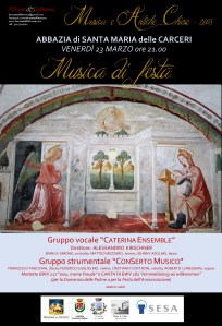 Troviamo come primo appuntamento di questi Concerti delle Feste un delicatissimo e travolgente concerto corale, con una delle formazioni più interessanti di tutta la nostra regione, e lo potremo gustare nella nostra cara Abbazia a Carceri.